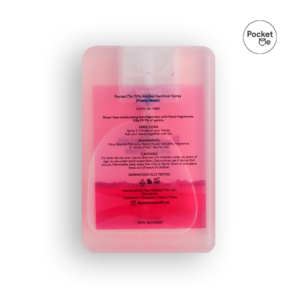 Pocket Me Travel Size Hand Sanitizer Spray with 75% Alcohol and Fast-Drying, Hydrating Formula (18ml)