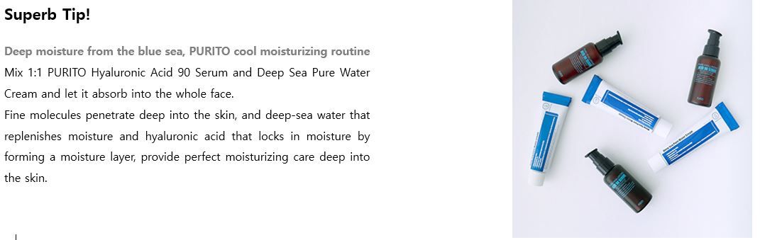 When used together with PURITO Deep Sea Pure Water Cream, it can eliminate thirsty skin, such as inner dryness, to produce a moist and dewy result.