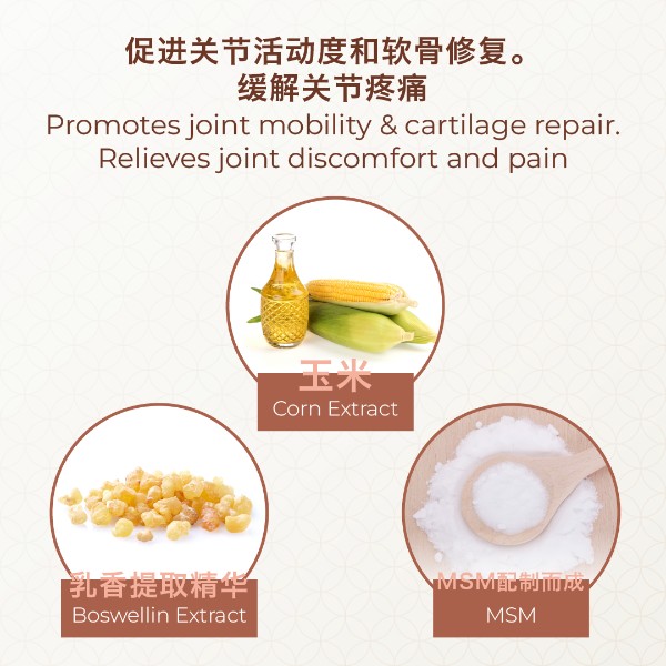 Plant-Glucosamine Flexi-Joint™ is formulated with plant-based glucosamine, MSM (Methylsulfonylmethane) and Boswellin extract. Its natural ingredients help support joint and cartilage structure and relieve joint discomfort, limited joint motion and joint cracking, etc.