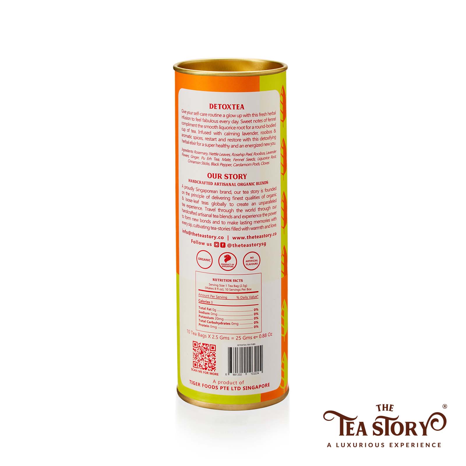 The Tea Story's Detoxtea Tea Tube includes: - 10 Luxury Pyramid Tea Bags of Detoxtea Blend