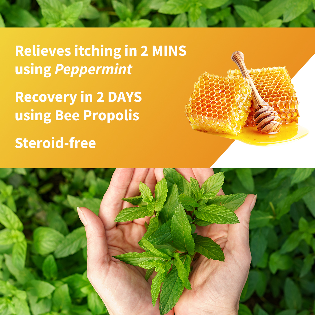 Theo10® ECZEMA is a soothing cream that provides rapid relief from itch without any steroids. The high menthol content in the cream provides a comfortable, cooling sensation that quickly helps to relieve itchiness, and the neem oil in the cream helps improve skin condition by reducing inflammation and irritation. The beeswax in the cream is responsible for its water-resistant property, lending prolonged protection and moisturising the skin constantly. In addition, it has moisturising and anti-inflammatory effects on the skin, reducing eczema symptoms. Lastly, the cream contains bee propolis which is a natural antiseptic, providing antimicrobial and anti-inflammatory properties, reducing the risk of infection and inflammation in eczema-prone skin.