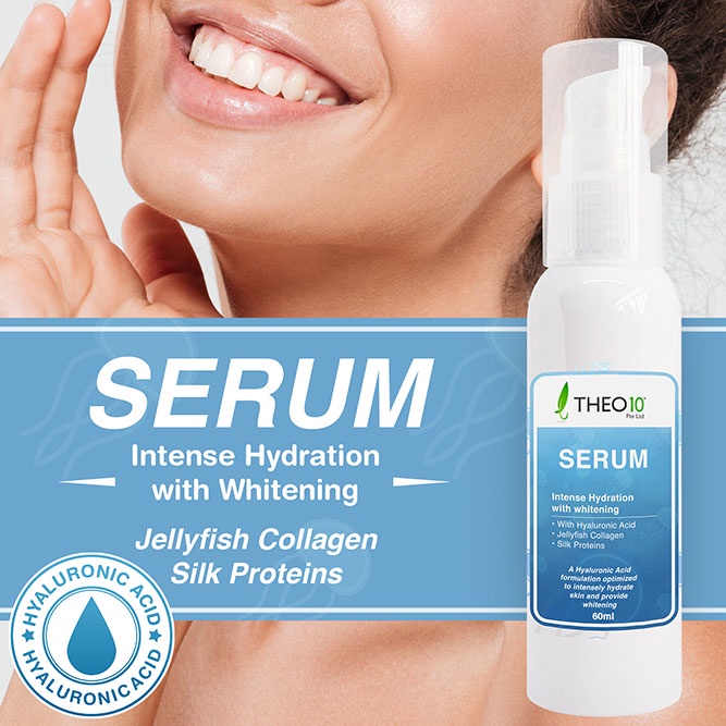 Theo10® Serum is a thin-viscosity topical facial product that contain concentrated amounts of active ingredients including hyaluronic acid, jellyfish collagen, silk proteins, vegetable glycerine and aloe Barbadensis miller. The concentrated dose of nutrients can penetrate the skin and hydrate on the deepest level, and it would pave the way to help your skin absorb the benefits of your moisturizer more efficaciously.
