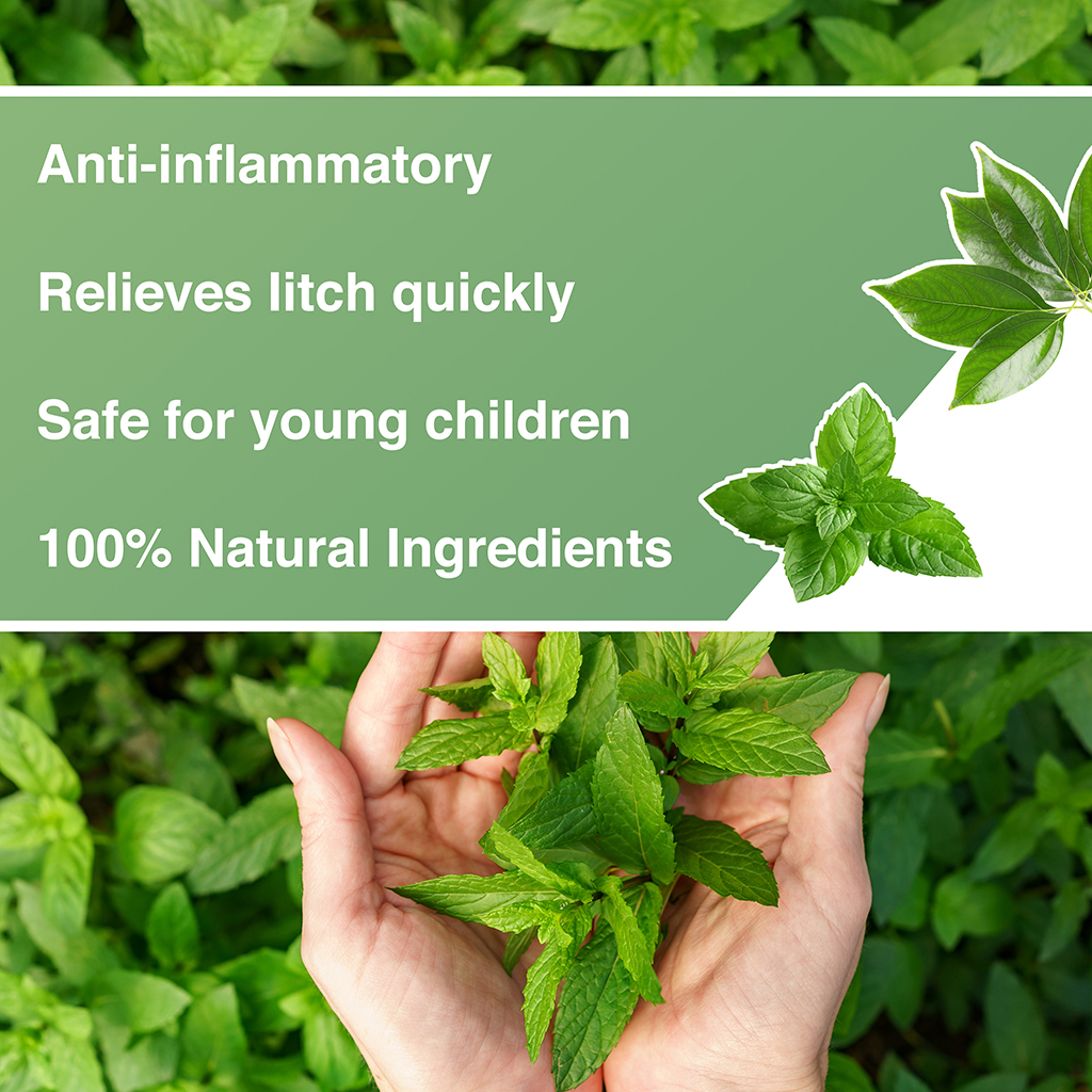 Itchiness is relieved fast with the high menthol content in our peppermint essential oil. It can be used on insect bites from mosquitoes, sand-flies, and even bed bugs. Our cream provides soothing properties to help reduce swelling and is especially useful for children.