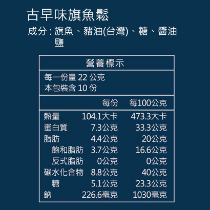 Marubun Swordfish Floss is made by selecting large white sailfish by a master with 10 years experience, and only selects 1/5 of the sashimi grade parts. It is made by a two-stage method of roasting and frying in an exclusive two-stage method. After fried till it's dried, it is put in a 360-degree roller pan and stir fry till golden. Using exclusive refined lard and big fish bones and with precise controlled temperature and humidity, the making of the fish floss particles are now completed. the fish floss particles each is full and thick, each bite is full and tastes rich. It is recommendated to eat with dim sum , fried rice, fish-flavored baked eggs, sushi, and toast.