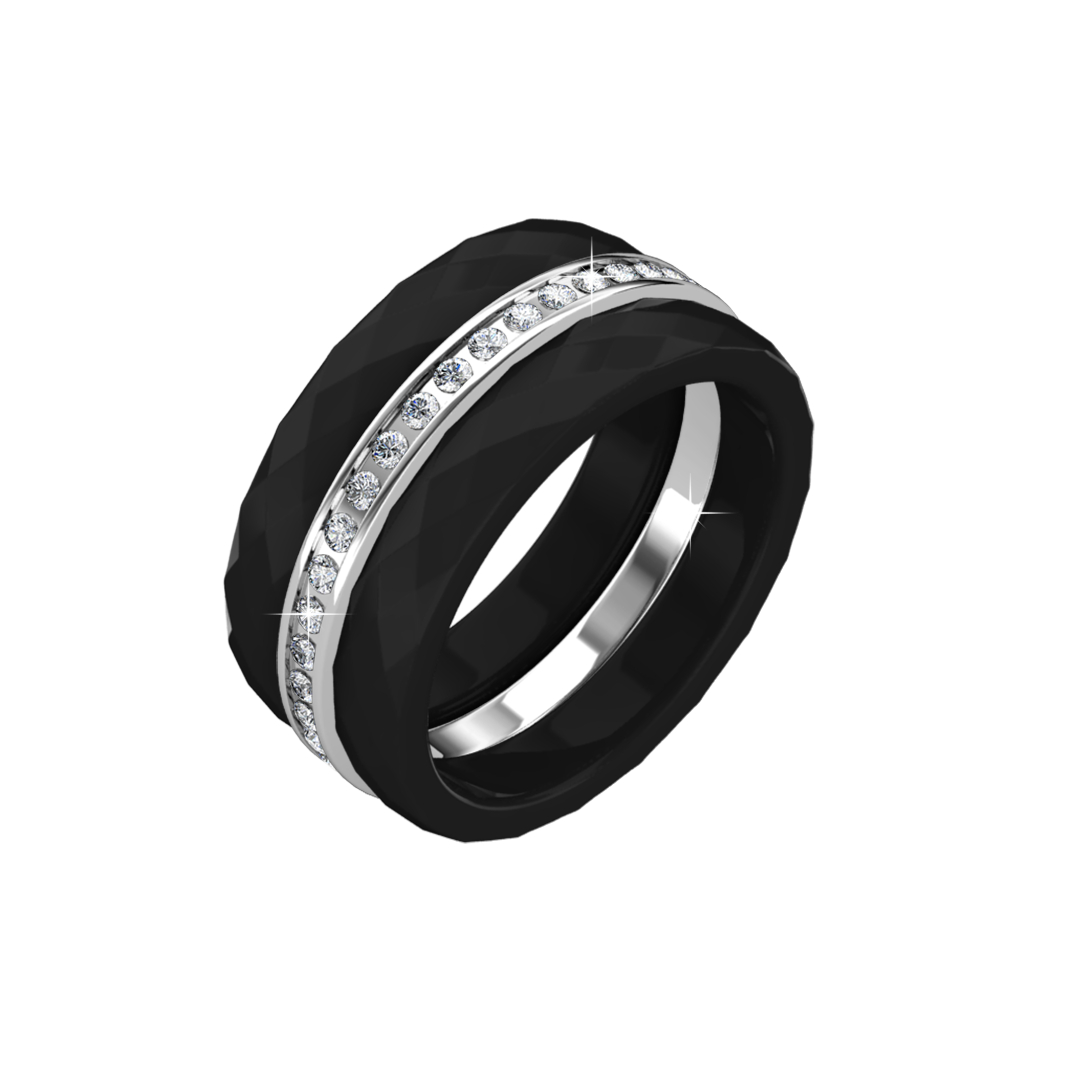 Material of Ring: Genuine Ceramic & Quality Brass 18K Rose / White Gold Plating for lasting shine Setting: Made with Swarovski Crystals Art.1028 XILION Chaton and 1088 XIRIUS ChatonDiameter of Main Swarovski Crystal: PP2 (0.9mm)No. of Swarovski Crystals: 18-22 depending on ring size