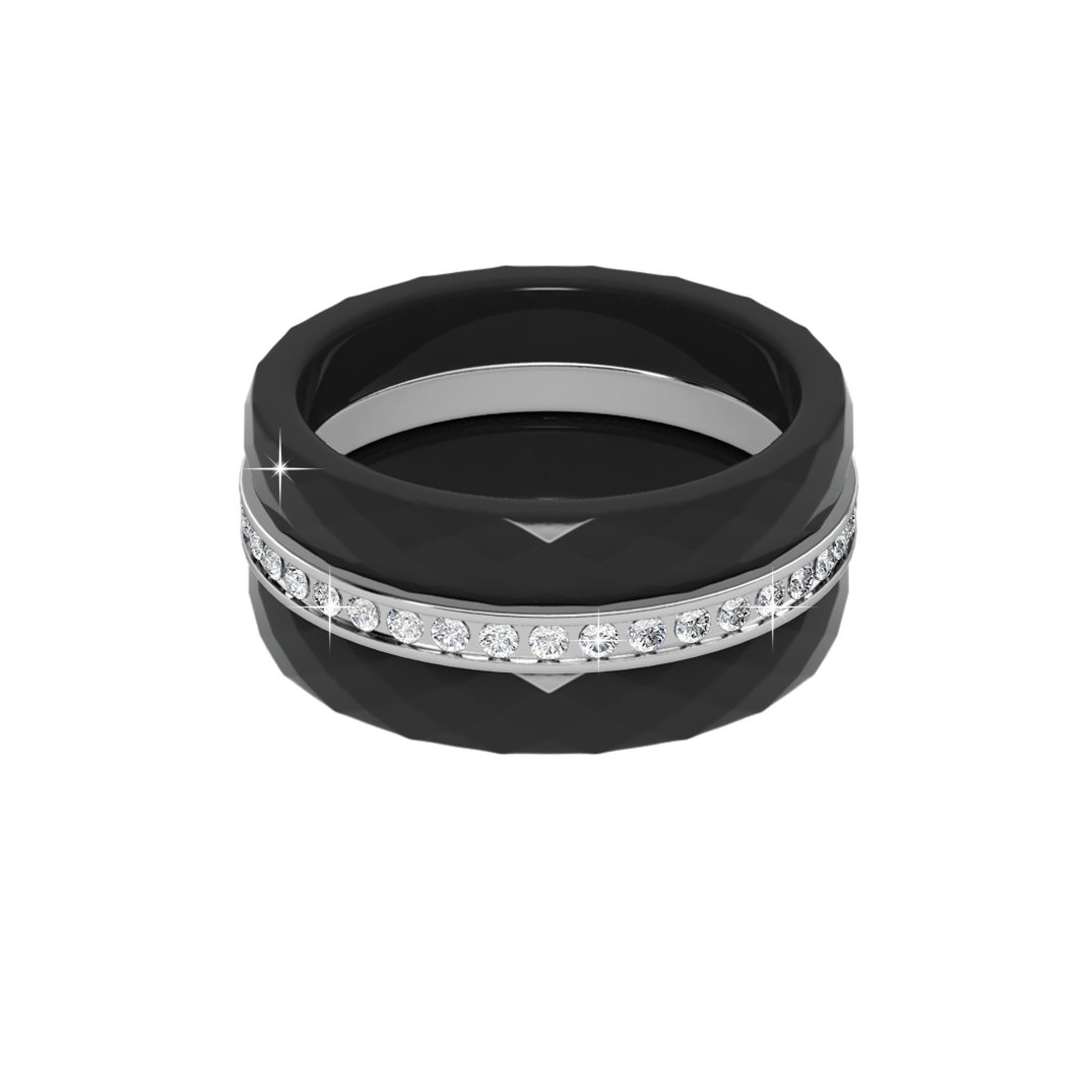 Material of Ring: Genuine Ceramic & Quality Brass 18K Rose / White Gold Plating for lasting shine Setting: Made with Swarovski Crystals Art.1028 XILION Chaton and 1088 XIRIUS ChatonDiameter of Main Swarovski Crystal: PP2 (0.9mm)No. of Swarovski Crystals: 18-22 depending on ring size