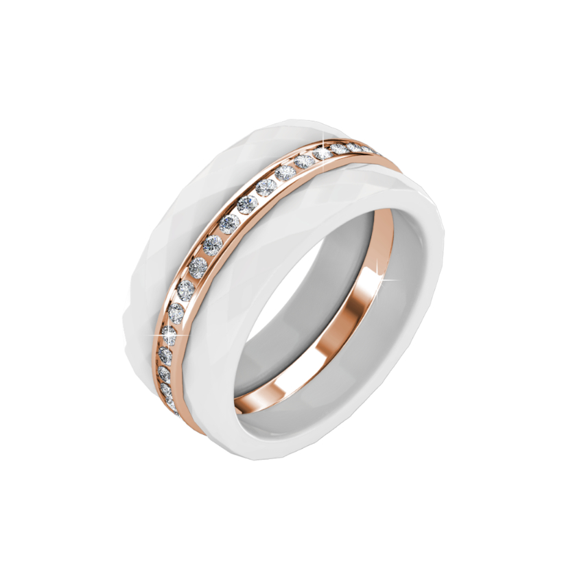 Material of Ring: Genuine Ceramic & Quality Brass 18K Rose / White Gold Plating for lasting shine Setting: Made with Swarovski Crystals Art.1028 XILION Chaton and 1088 XIRIUS ChatonDiameter of Main Swarovski Crystal: PP2 (0.9mm)No. of Swarovski Crystals: 18-22 depending on ring size