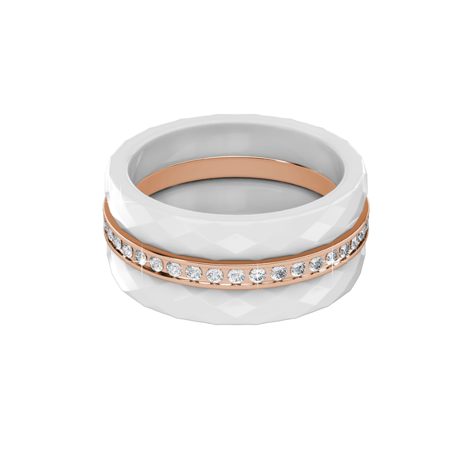 Material of Ring: Genuine Ceramic & Quality Brass 18K Rose / White Gold Plating for lasting shine Setting: Made with Swarovski Crystals Art.1028 XILION Chaton and 1088 XIRIUS ChatonDiameter of Main Swarovski Crystal: PP2 (0.9mm)No. of Swarovski Crystals: 18-22 depending on ring size