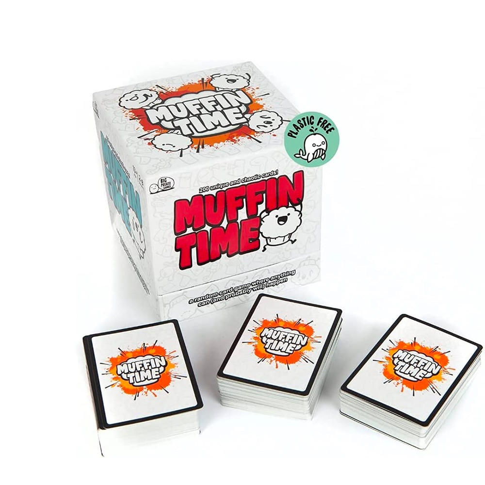 Muffin Time is a chaotic card game with more twists and turns than you can shake a spork at! Battle your friends, family, and hyper-intelligent pets by drawing and playing from a deck of unique cards that'll either help you, thwart others, or mix things up for the sheer hell of it! To win the game, you just need to start your turn with exactly 10 cards in your hand, but if you think that'll be easy, you're wrong (wronger than a duck wearing shoes- and that's pretty damn wrong).