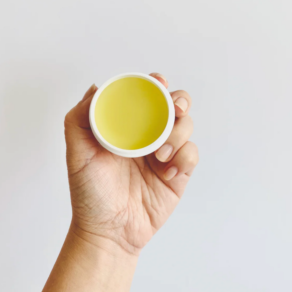 *Olive oil, *Grapeseed oil, Yuzu seed oil, *Jojoba oil, *Shea Butter, Beeswax, *Essential oils of Grapefruit, Orange, Bergamot, Lavender, Tangerine, Chamomile, Lemongrass, Clary Sage. (*organic ingredients)