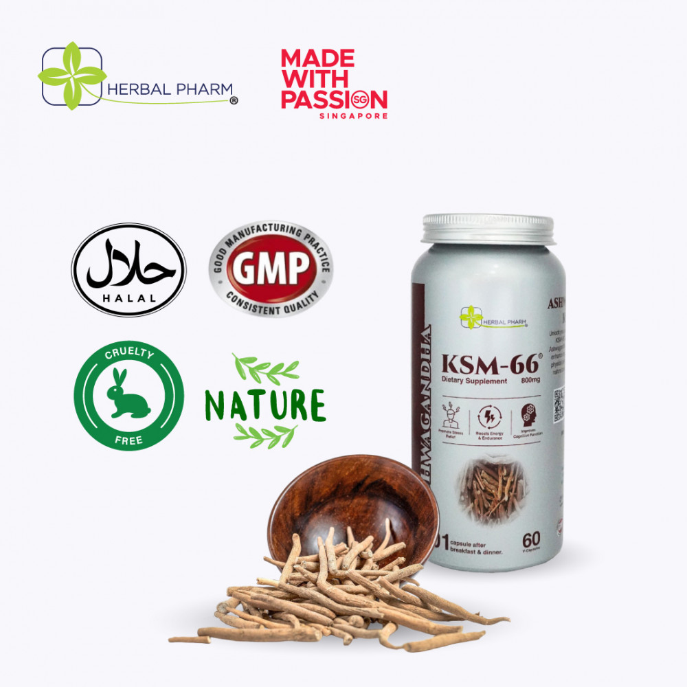 Feel your best every day with the trusted power of Herbal Pharm Ashwagandha – featuring KSM-66.