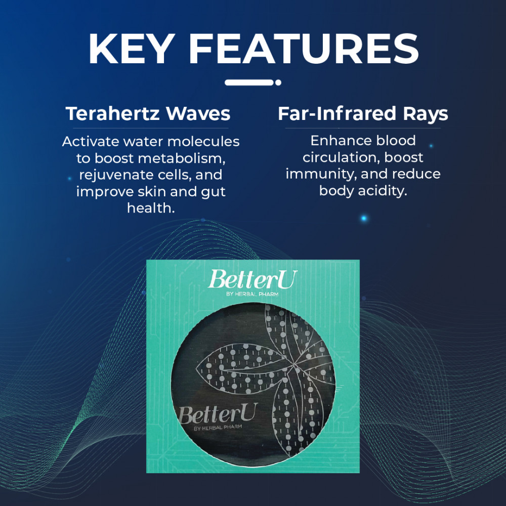 Elevate your wellness routine with the Herbal Pharm BetterU Disk Coaster, a sleek and innovative device designed to harness the power of Terahertz waves and Far-infrared rays. This compact coaster emits gentle energy frequencies that promote enhanced blood circulation, cellular rejuvenation, and natural detoxification.