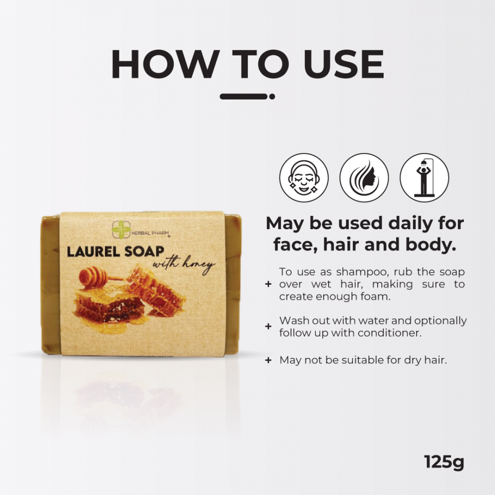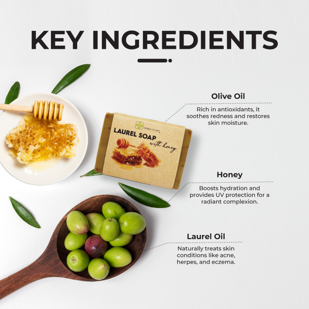 Herbal Pharm Laurel Soap with Honey – 125g | Natural Cleanse, Deep Hydration & Sun Protection