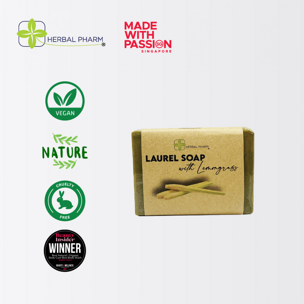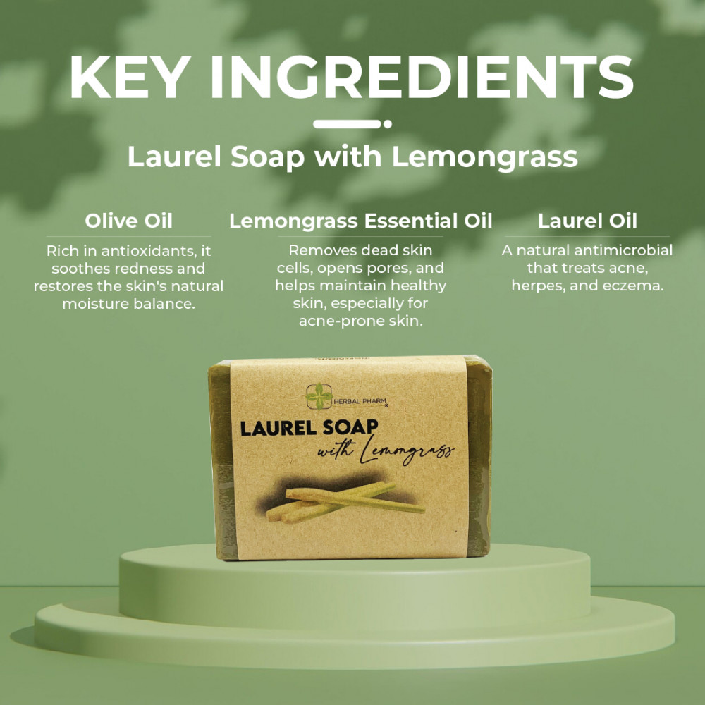 Herbal Pharm Laurel Soap with Lemongrass | 100% Vegan, Natural, and Acne-Fighting