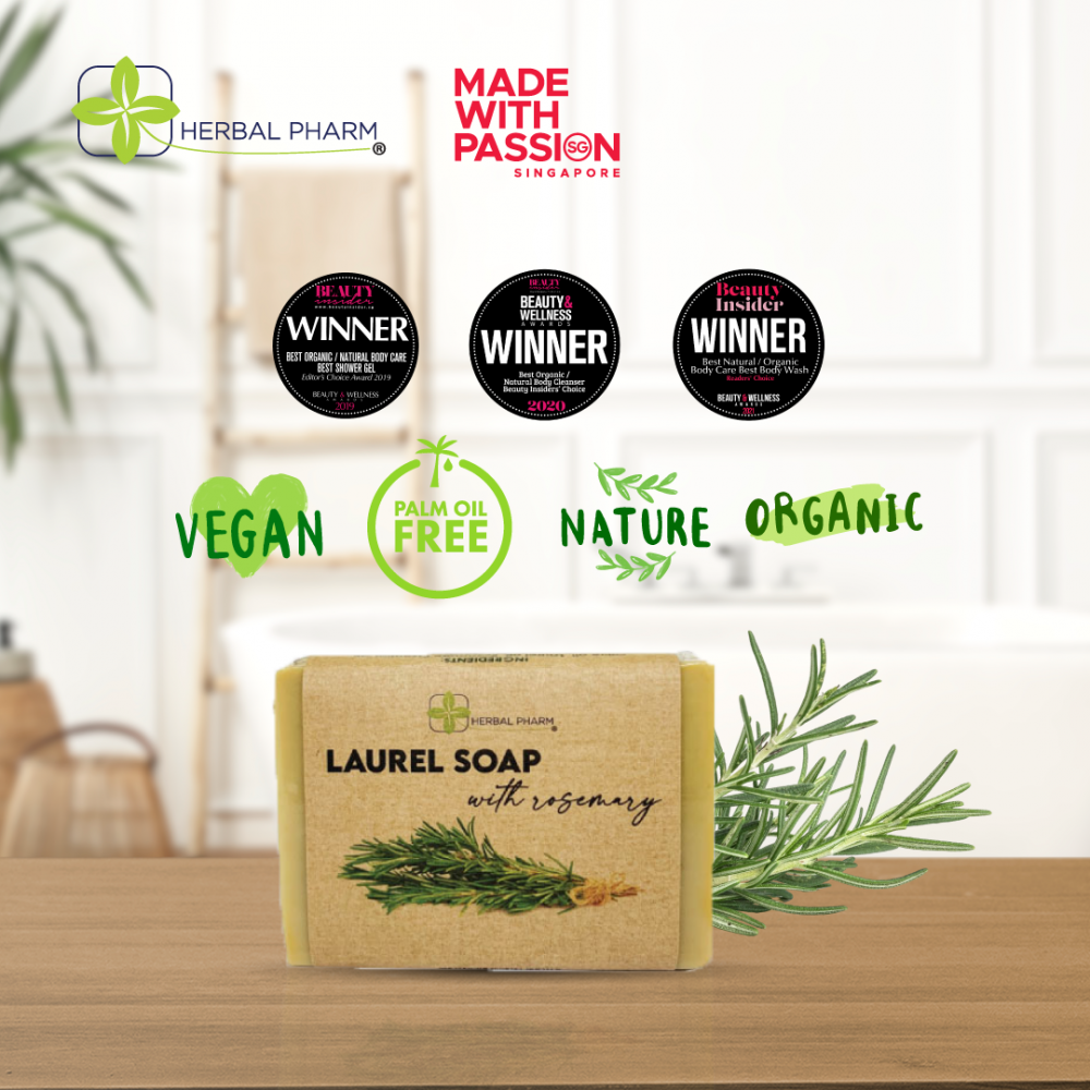 Herbal Pharm Laurel Soap with Rosemary – Natural Soap for Skin & Scalp Health