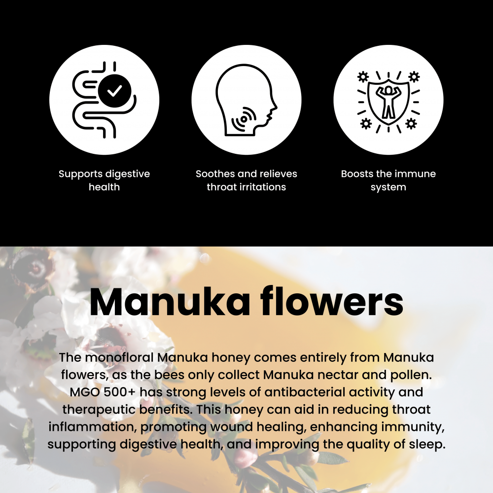 Experience the purest Mānuka honey, harvested directly from New Zealand. Renowned for its signature smoothness and rich, full-bodied floral flavor, this honey is a natural powerhouse that supports your overall wellness every day.