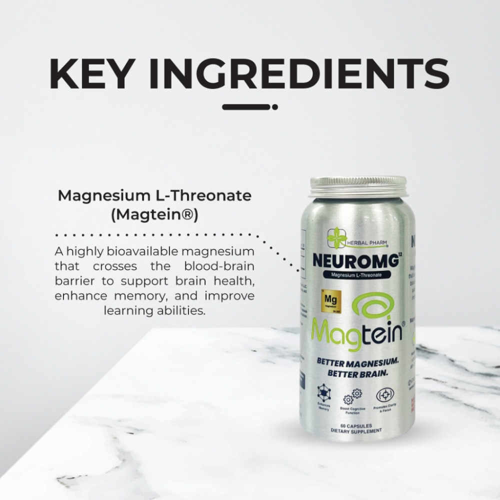 Experience the next level of mental clarity and cognitive performance with NeuroMg¹² by Herbal Pharm, formulated with Magtein®—a patented, scientifically validated form of Magnesium L-Threonate. Unlike standard magnesium supplements, Magtein® is uniquely able to cross the blood-brain barrier, delivering superior support for brain function, memory, and long-term cognitive health.