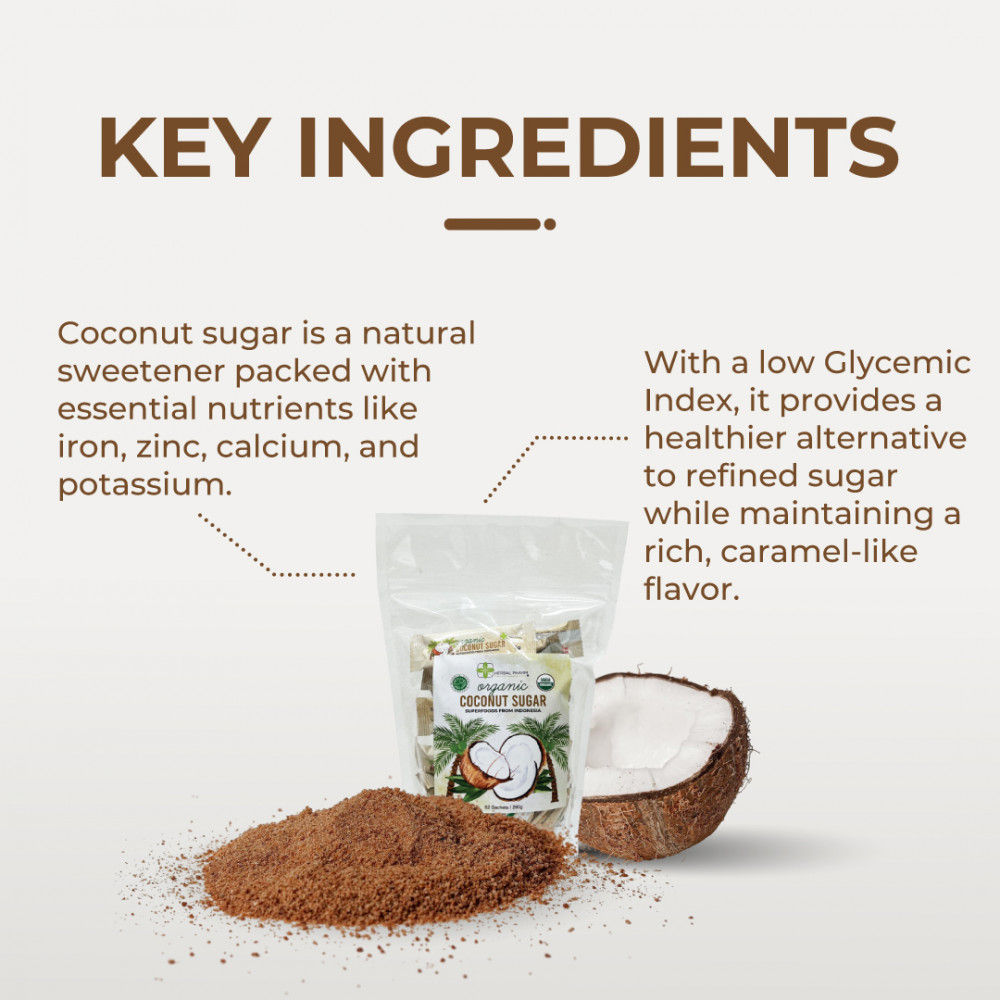 Enjoy guilt-free sweetness with Herbal Pharm’s Organic Coconut Sugar Sachets — a natural, low glycaemic index (GI) sweetener conveniently packed in individual sachets. Sourced from the nectar of coconut palm blossoms, this unrefined sugar retains essential nutrients and delivers a rich, caramel-like flavor perfect for drinks, cooking, and baking.