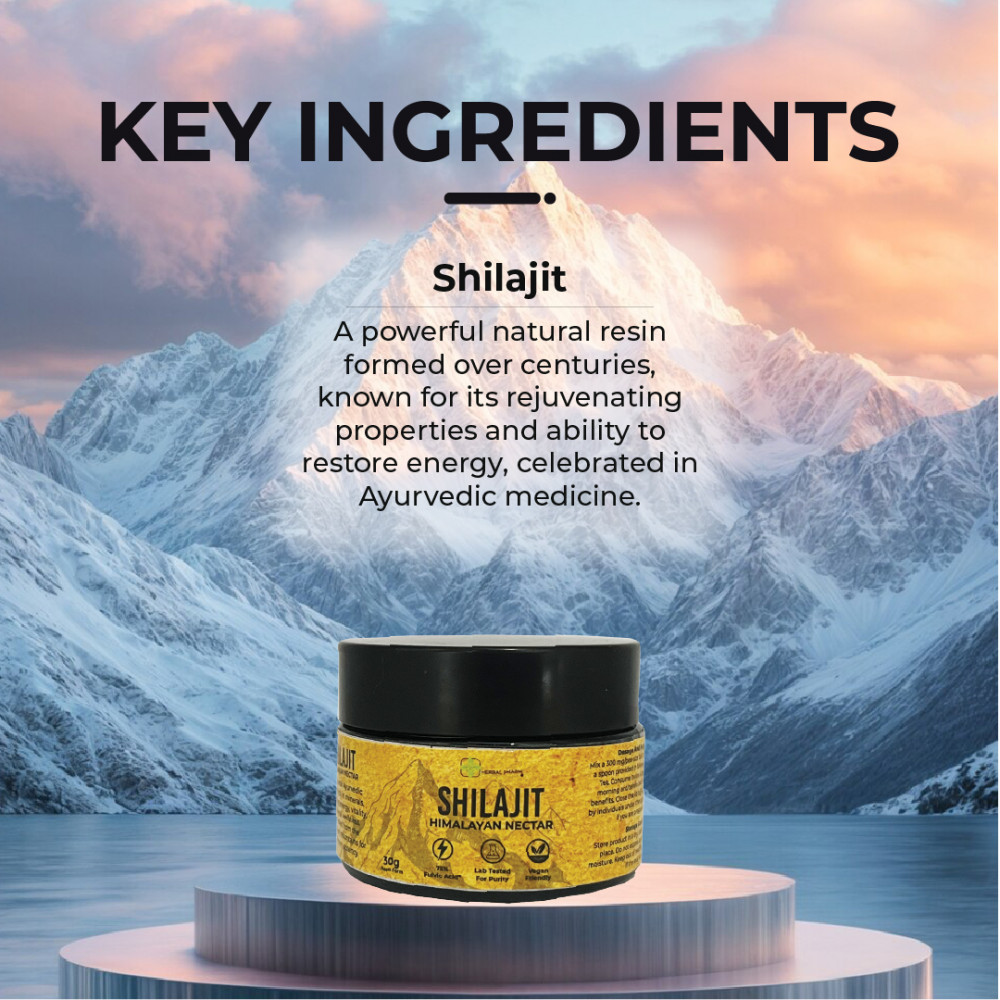 Herbal Pharm Shilajit is a powerful natural resin formed over centuries from decomposed plant matter found in high-altitude mountain rocks. A cornerstone of Ayurvedic medicine, it is renowned for its ability to rejuvenate the body, restore energy, and support overall wellness.