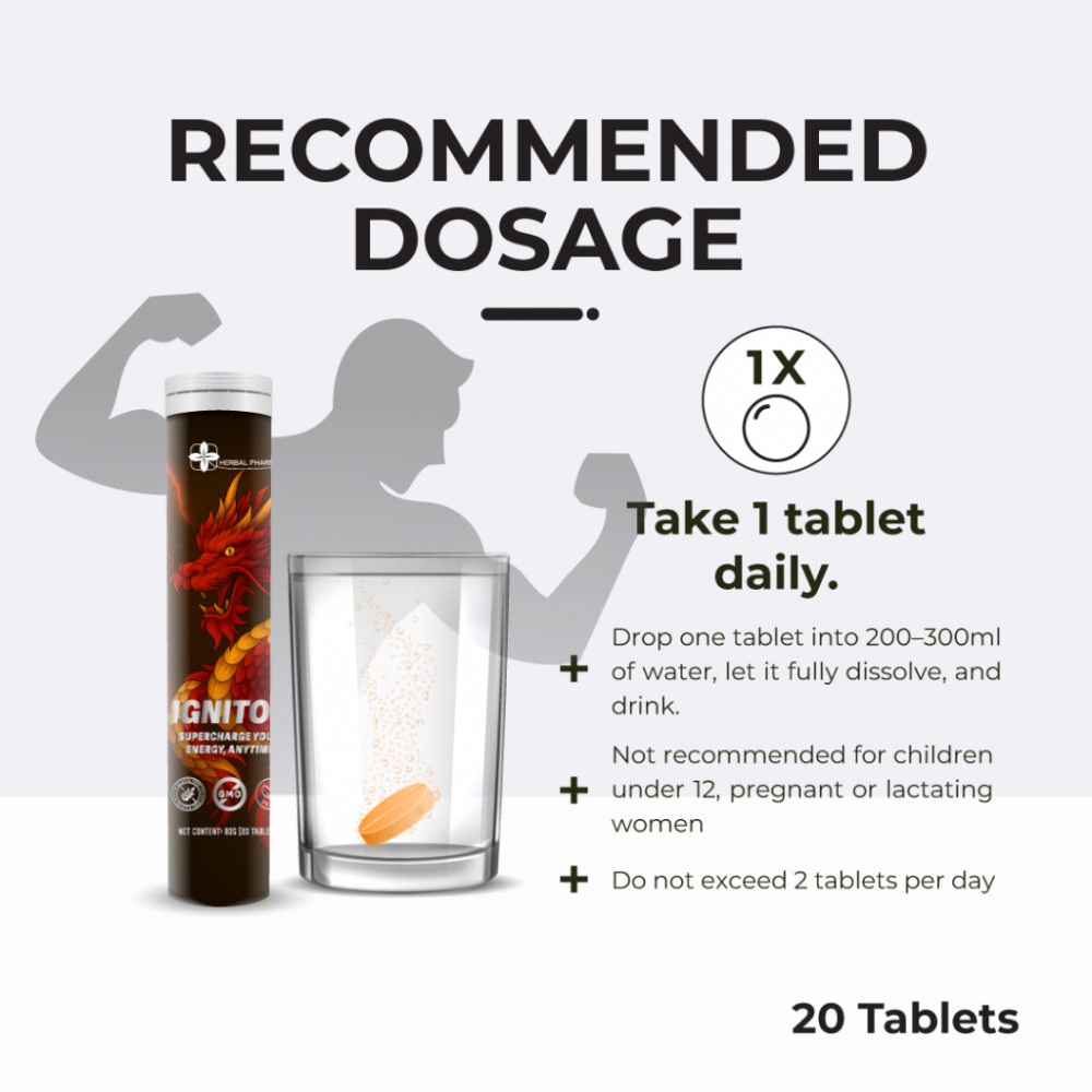 Ignitor Effervescent Tablets deliver clean, lasting energy in a refreshing, easy-to-take format.