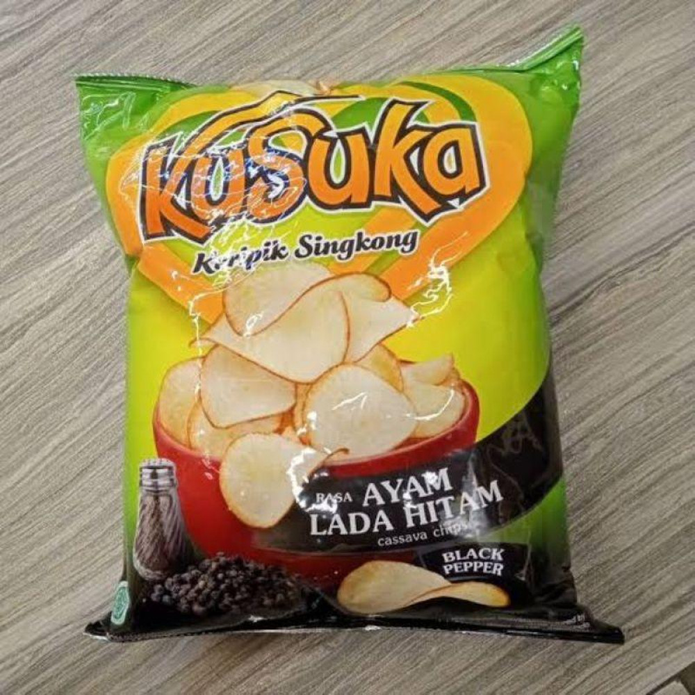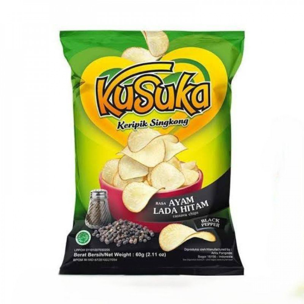 Kusuka Black Pepper Cassava Chips 60g is a crispy cassava chip snack that delivers a bold, savory black pepper kick in every bite. Made from carefully selected cassava and seasoned with a special black pepper blend, each chip is processed hygienically using modern technology to ensure top quality and satisfying crunch.