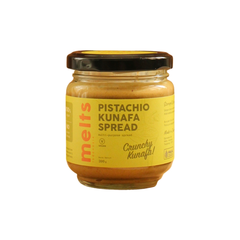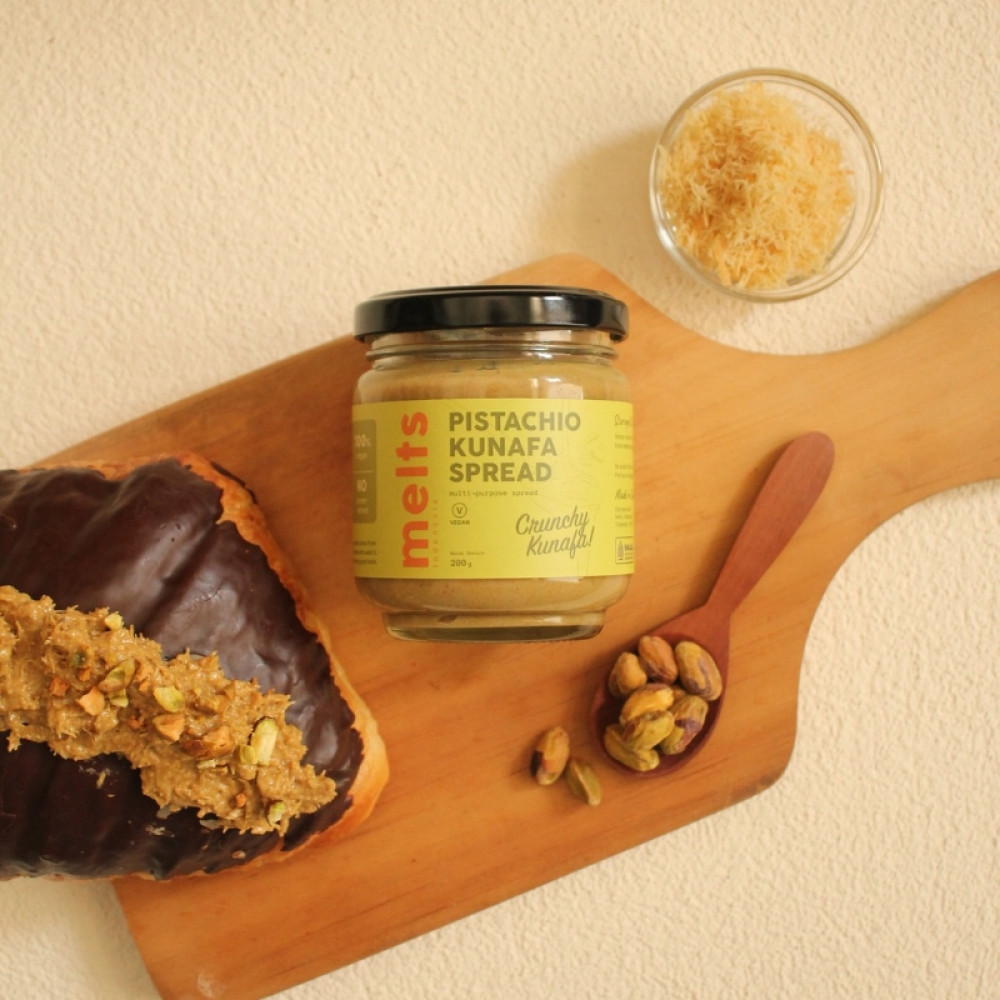 Melts Pistachio Kunafa Spread is inspired by the beloved Middle Eastern dessert, offering a rich and creamy pistachio spread perfectly paired with the delightful crunch of kunafa strands. This indulgent spread can be enjoyed in many ways spread on toast, drizzled over desserts, or incorporated into pastries. With its irresistible nutty sweetness, it’s a must-have for those who love unique and flavorful treats!