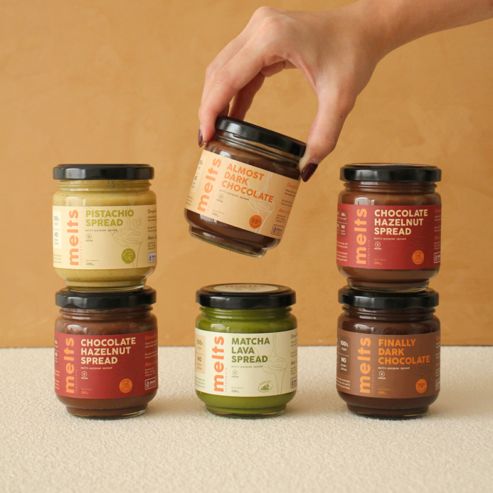 Melts spread comes in 3 different flavors: Matcha, Dark Chocolate and Hazelnut. Makes sure to try them all and taste this addictive plant based spreads!