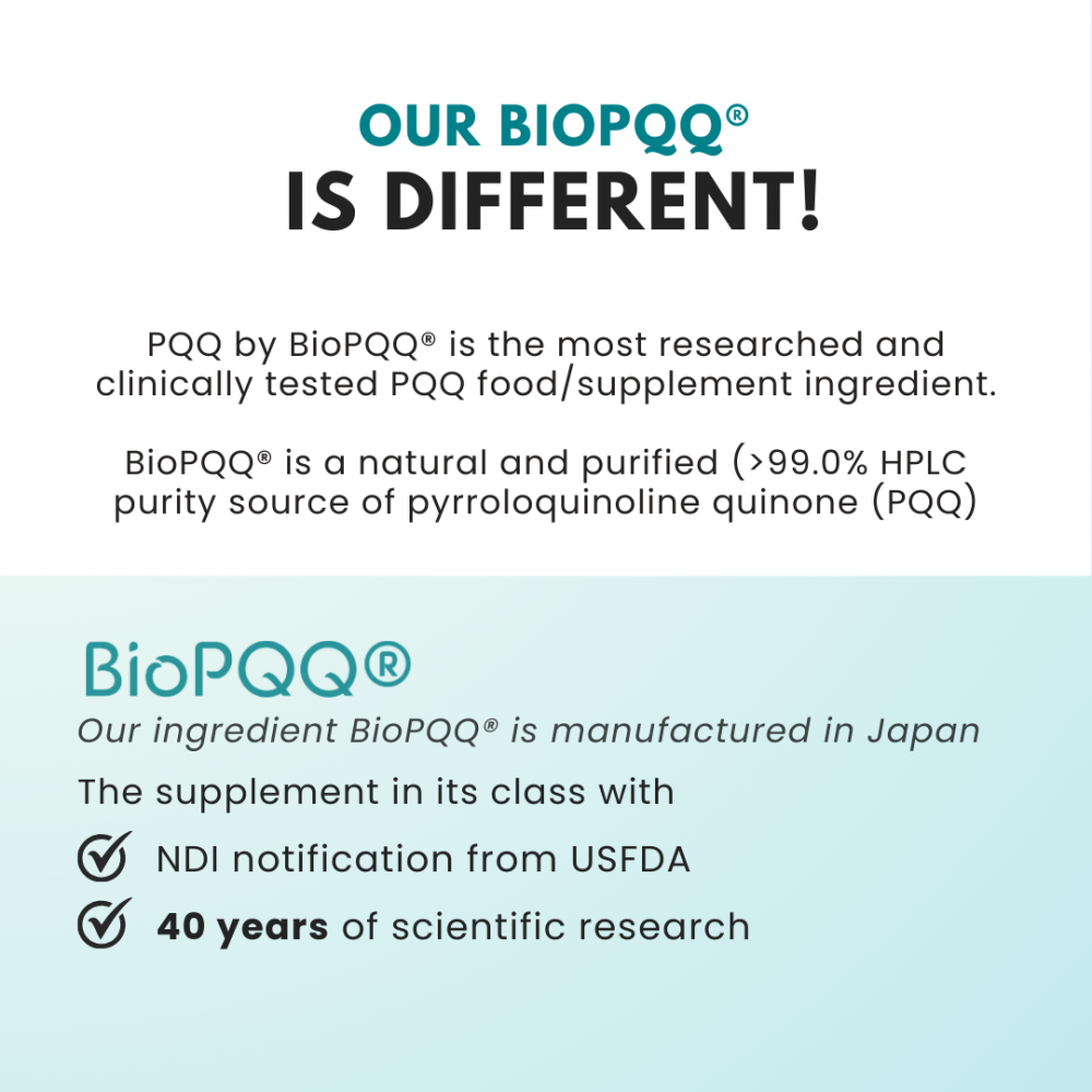 BIOPQQ is 100% from Japan and it is the ONLY PQQ that has 10 proven clinical studies done on human, particularly in brain health.