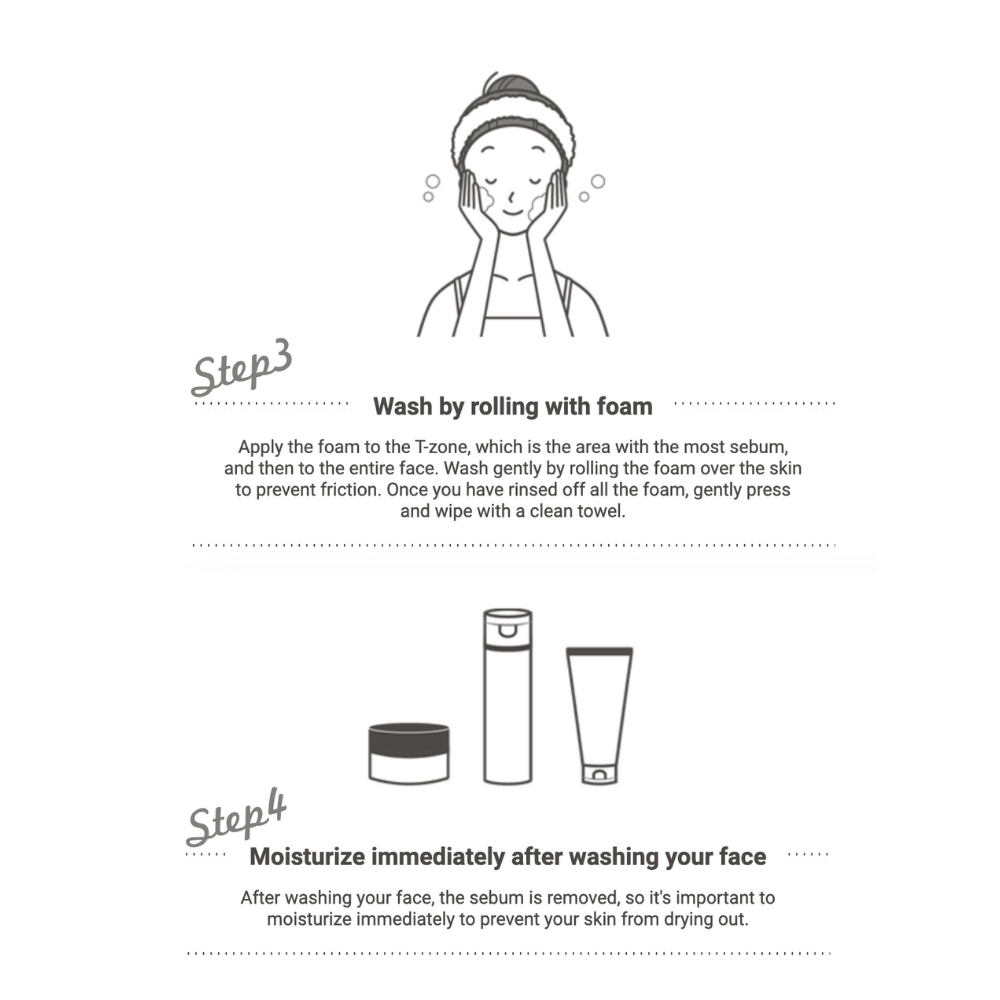 3. After washing your face, rinse thoroughly so that no residue remains. (Lathering with a lathering net will better adsorb dirt.)