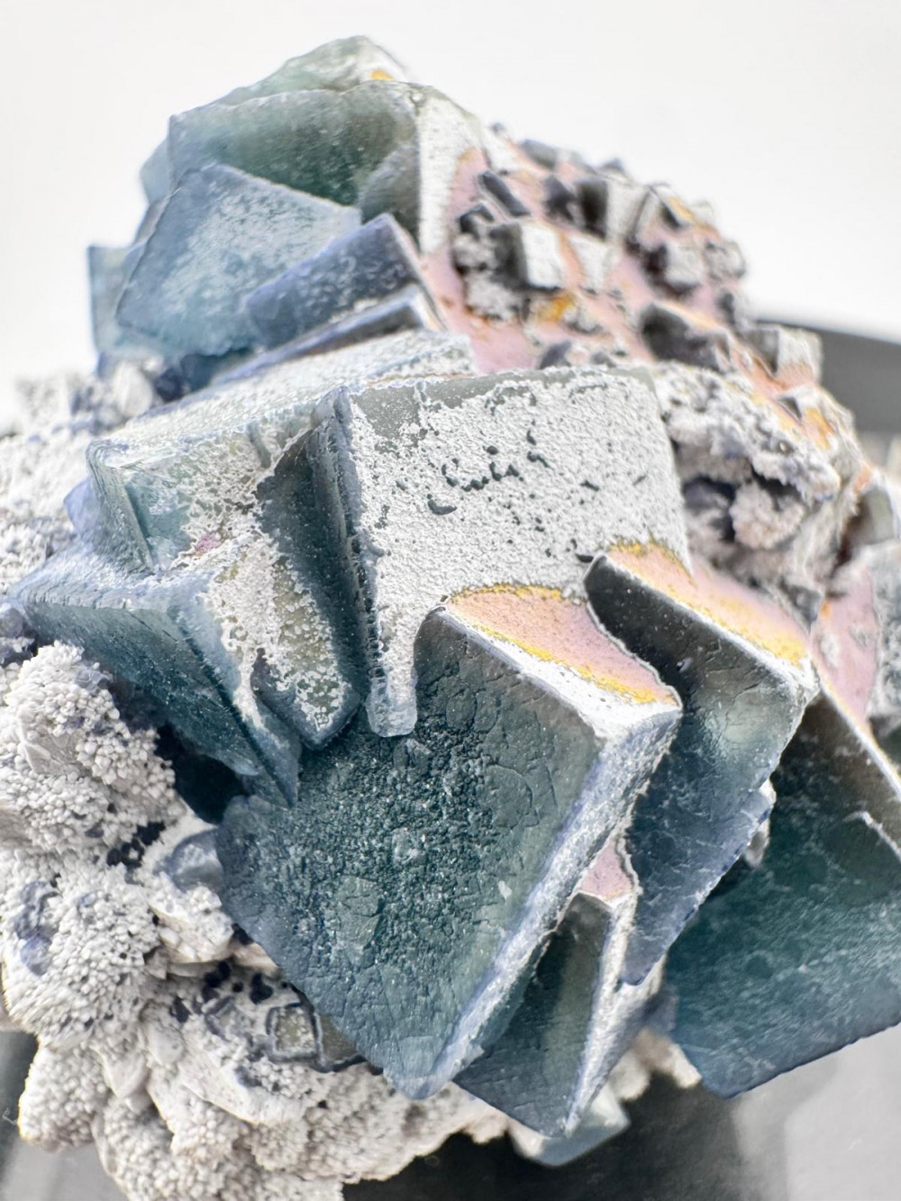 Description: Discover the breathtaking allure of this Deep Blue-Green Fluorite crystal cluster elegantly perched on a pristine Snow-White Quartz base, sourced exclusively from the famous Huanggang Mine in Inner Mongolia, China. Measuring 8 cm by 6 cm and weighing 171g, this specimen is a true masterpiece — a collector’s treasure that seamlessly blends striking aesthetics with geological rarity. Each fluorite crystal, perfectly formed with vivid cubic structures, radiates an intense sea-green hue with a subtle matte glow and delicate translucent zones that create mesmerizing depth and dimension. The vibrant contrast against the snowy quartzaceous backdrop delivers a stunning visual impact that commands attention and elevates any collection or décor. Ideal for enthusiasts seeking a unique mineral gem, this specimen not only embodies natural elegance but also carries the prestige of one of China’s most valued mineral sources. Don’t miss the opportunity to own this extraordinary crystal cluster — a captivating statement piece destined to inspire admiration. Add this unparalleled collector’s gem to your collection today and experience the perfect harmony of color, form, and origin.